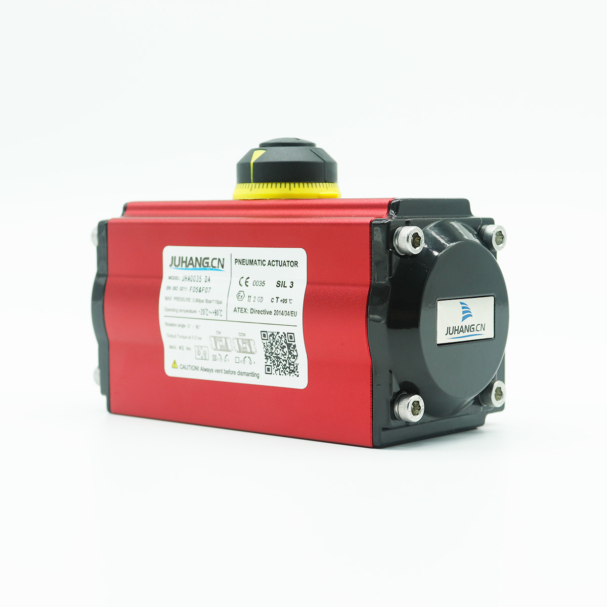 Двойното действие на багажника и зъбното колело за задвижване JHA0035DA се захранва от сгъстен въздух, задвижван от правия движение на буталния багажник, за да задвижва предавката на предавката на изходния вал, и извеждането от ъгловия удар на пневматичния задействащ механизъм. Широко използван в клапана с топче, пеперуда, клапан за щепсели и други превключватели и регулиране на ъгъла на ъгъла, също може да се приложи към други въртящи се случаи, е идеалното устройство за постигане на контрол на промишлената автоматизация на тръбопровода.